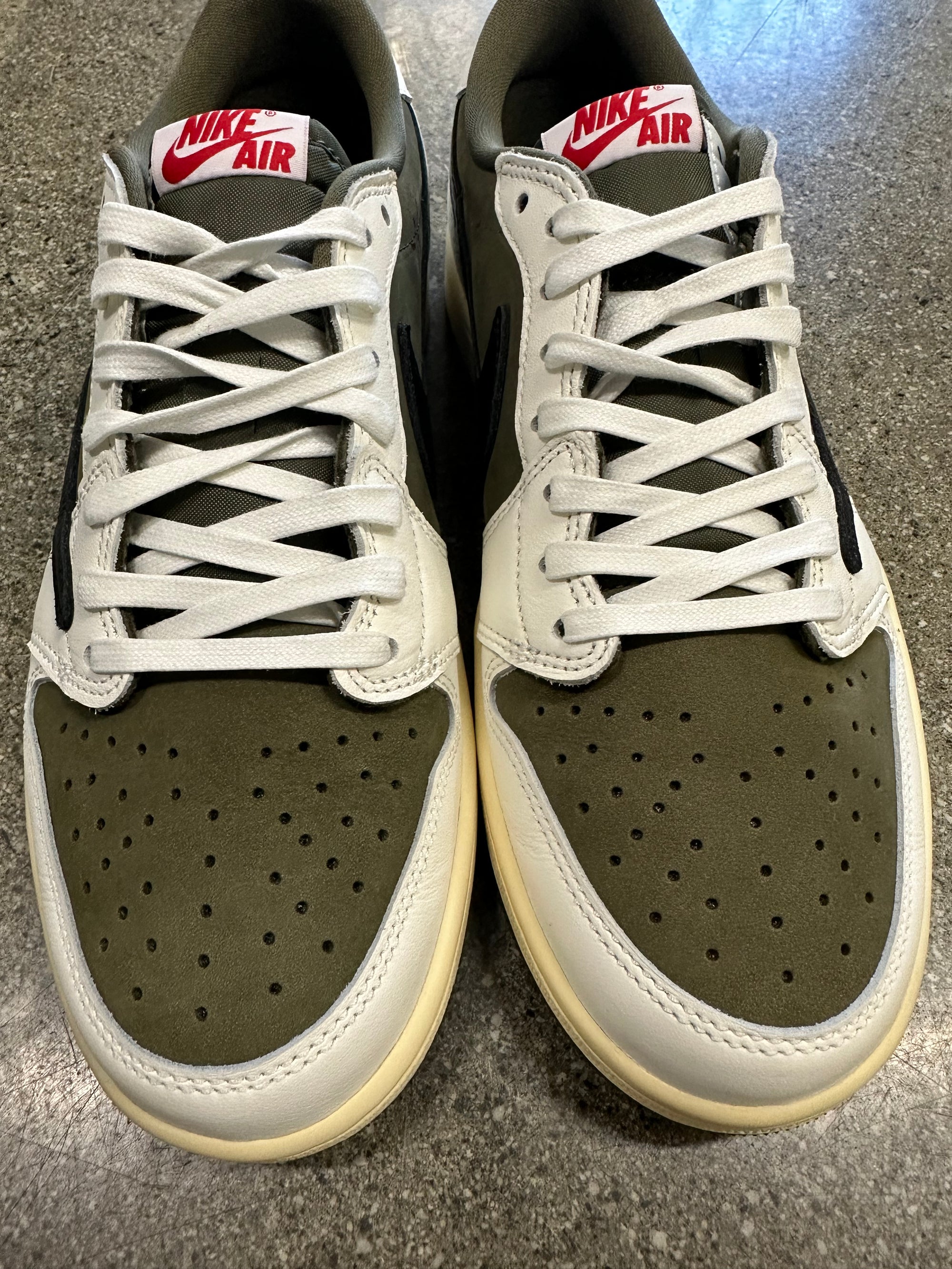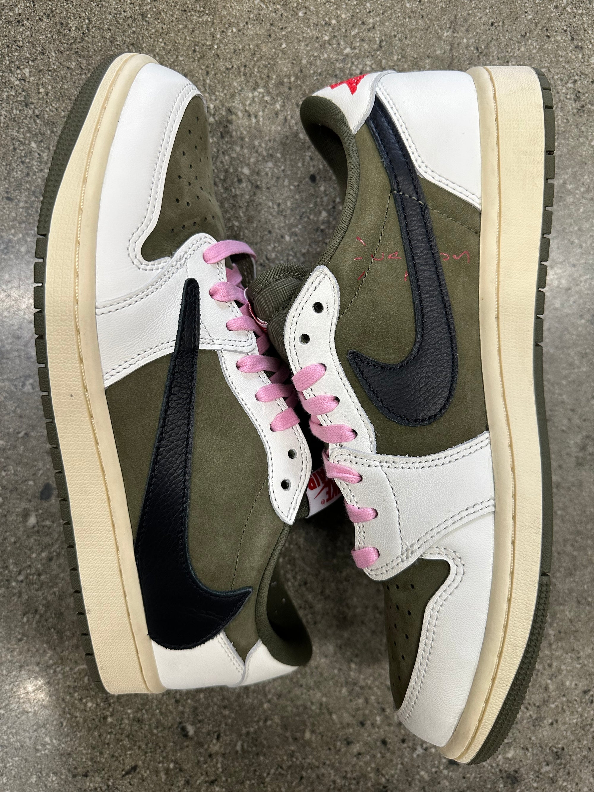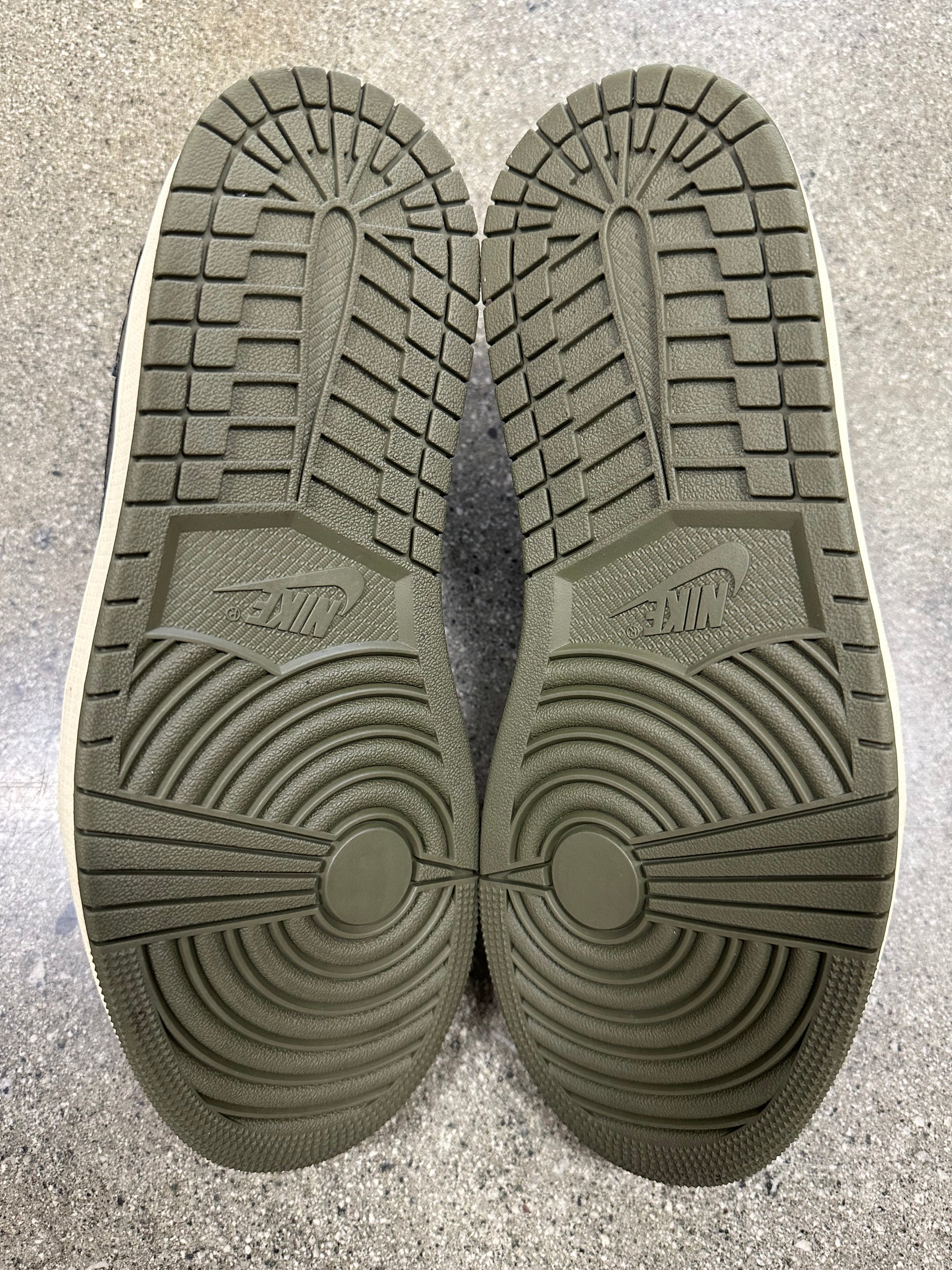 AIR JORDAN 1 LOW TRAVIS SCOTT MEDIUM OLIVE - SIZE 9.5 (WORN) - SUPER CLEAN
