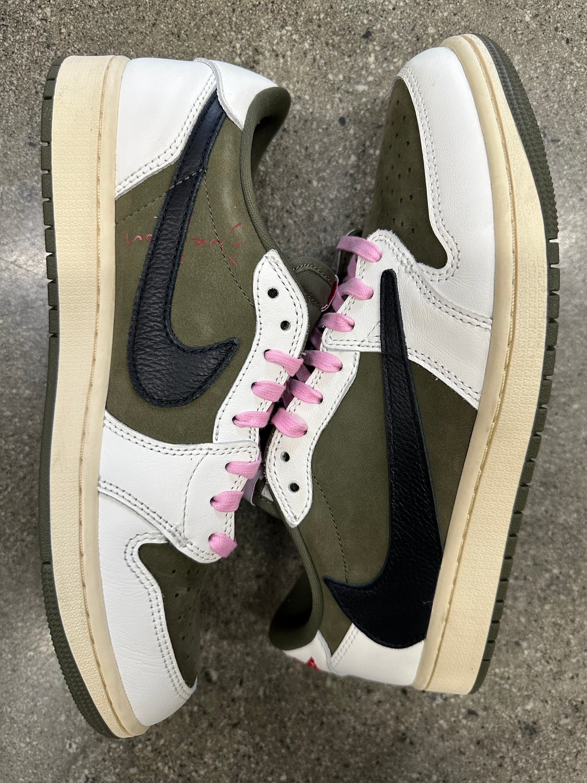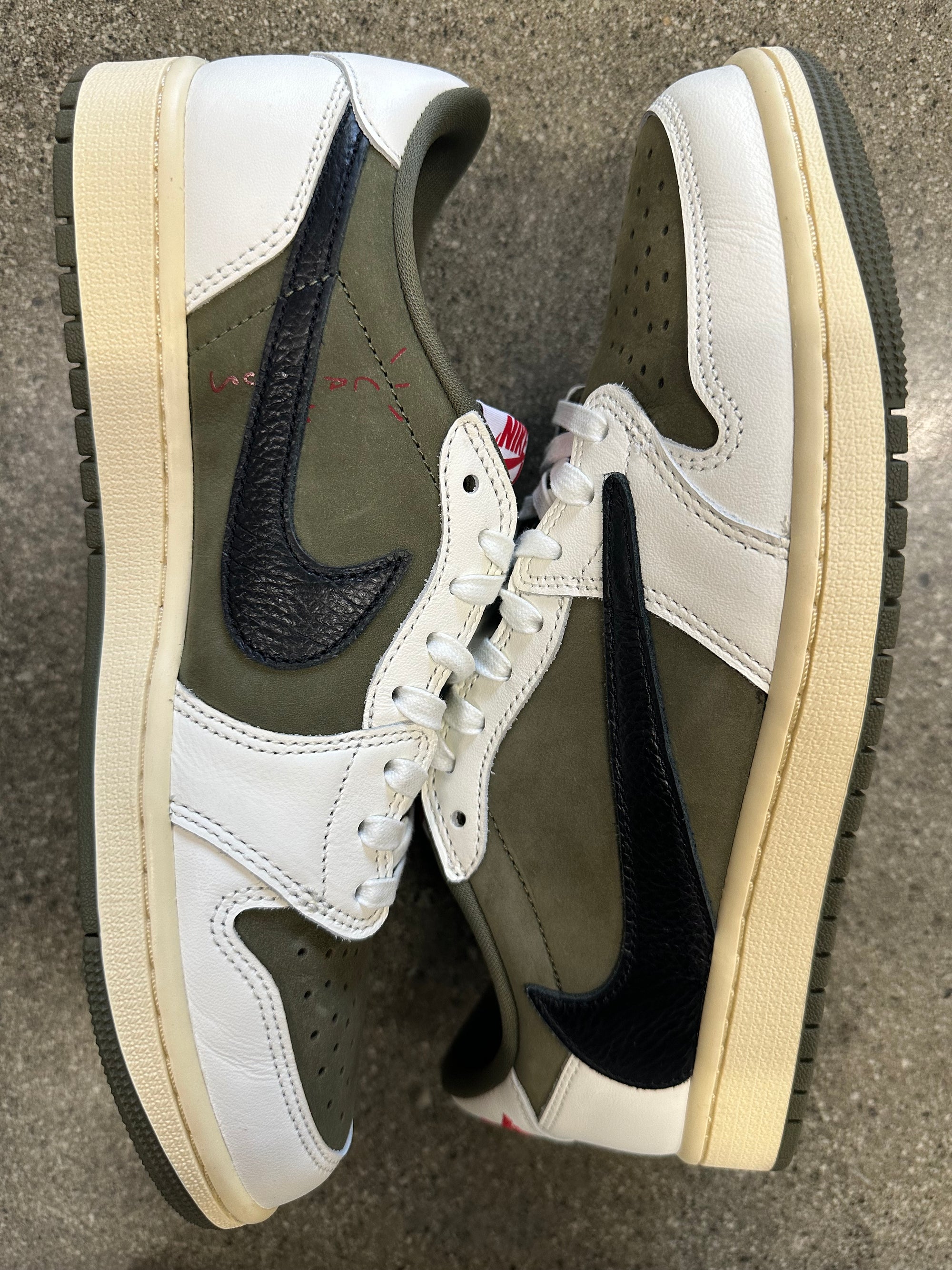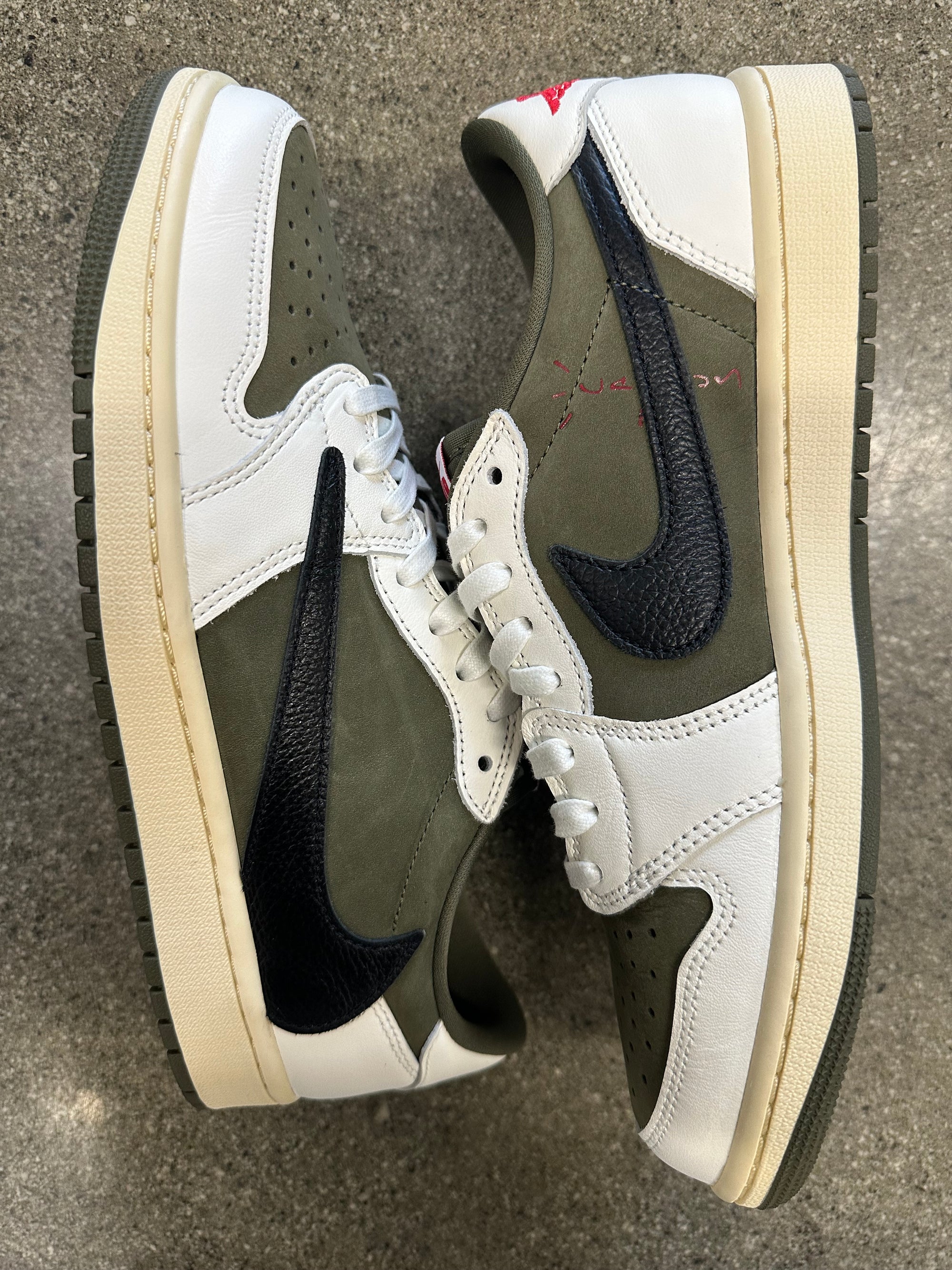 AIR JORDAN 1 LOW TRAVIS SCOTT MEDIUM OLIVE - SIZE 9.5 (WORN) - SUPER CLEAN